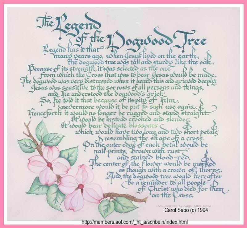 Every year along about this time folks on this side of the world start digging up the old Easter legends. One of my favorite ol’ chestnuts is The Legend of the Dogwood.