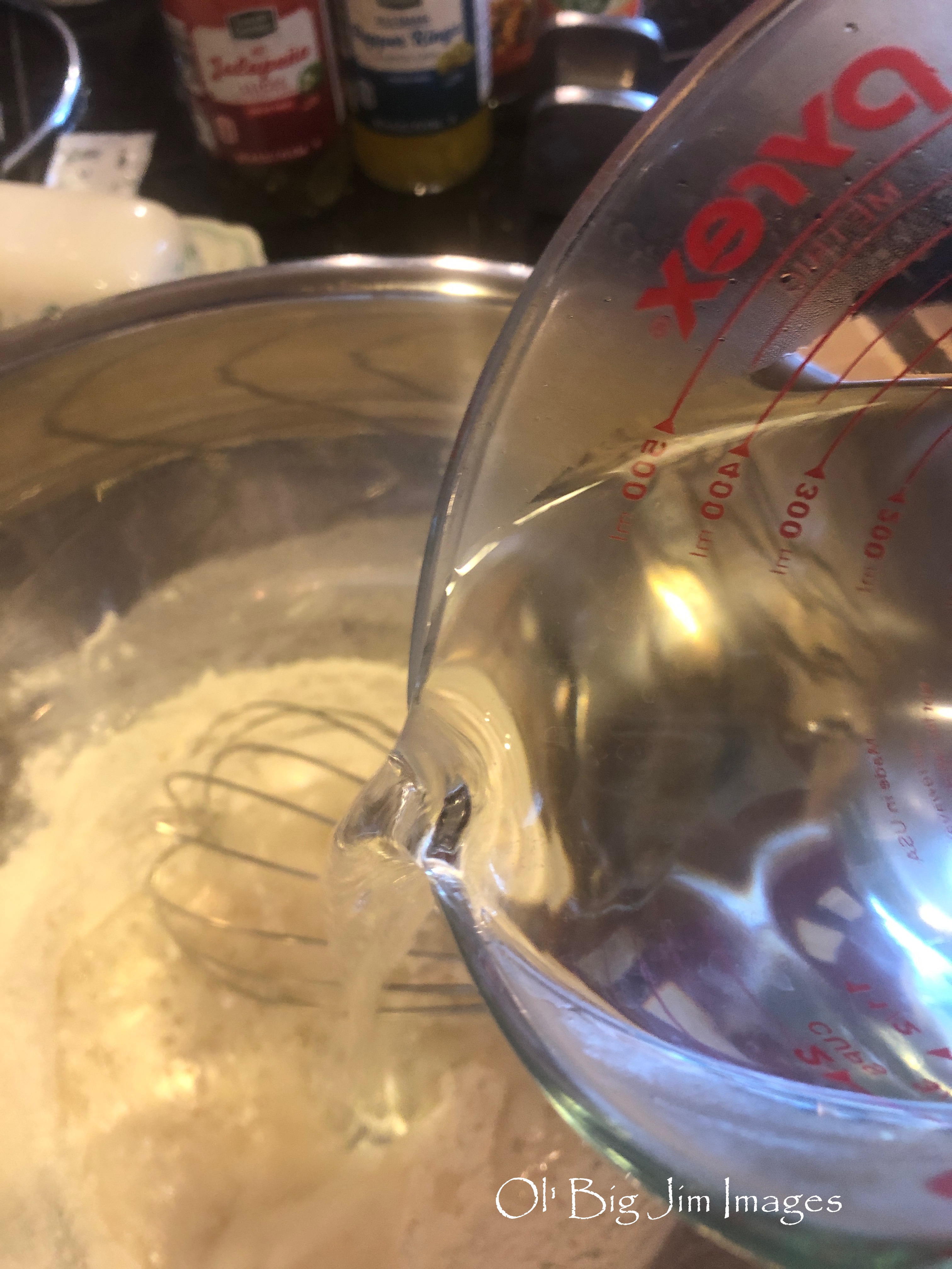 I gathered everything I’d be needing and set to it. I started out with 3 cups of all-purpose flour, ¼ teaspoon of yeast, and a teaspoon of salt. After mixing all the dry ingredients I added some quite hot water and began to stir.
