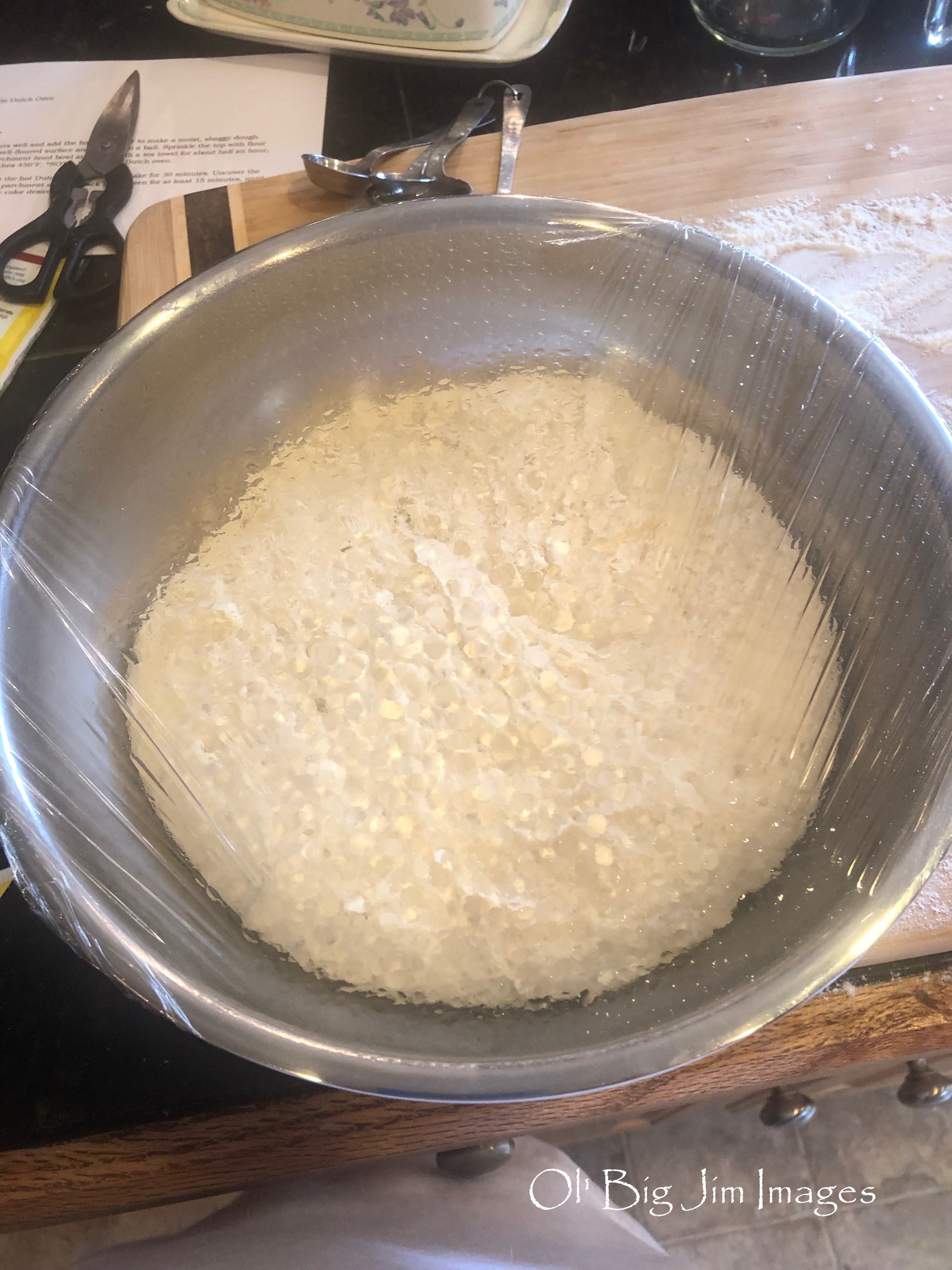 After shaping the ball, I covered the bowl with shrink film and left it to rise for three hours. It didn’t quite double, but it was close.