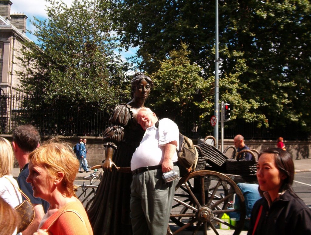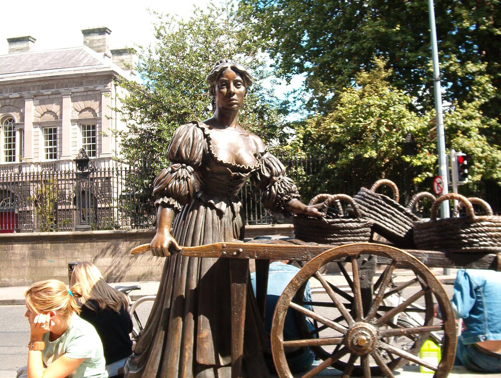 This statue of Molly was created by Jeanne Rynhart in 1988. Her revealing Victorian garb slyly hints at her second job. Sure, and in no time at all she was rechristened ‘The Tart with a Cart”.