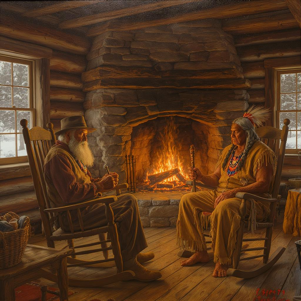 Years later—how many I won’t admit—We still sit beside our fire. His hair is mostly silver now. Mine faded to white years ago. We don’t talk much. Don’t need to.