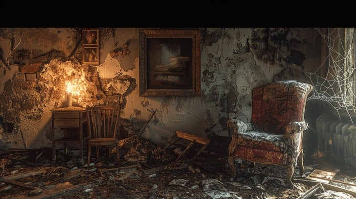 He turned in place, heart beginning to thud. There was a chair in the corner, its back turned toward him. A small table sat beside it with a single lamp that wasn’t plugged in. The smell in the air was faint but wrong, like wet soil and something metallic.